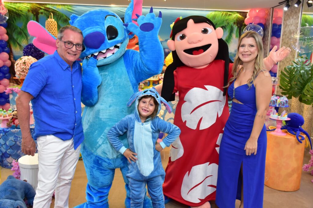 Bastante colorida, e com bolas e flores, a festa, realizada no salão Arca Encantada, teve como tema o Stitch, personagem do filme Lilo & Stitch, dos estúdios Disney, que fez o maior sucesso.