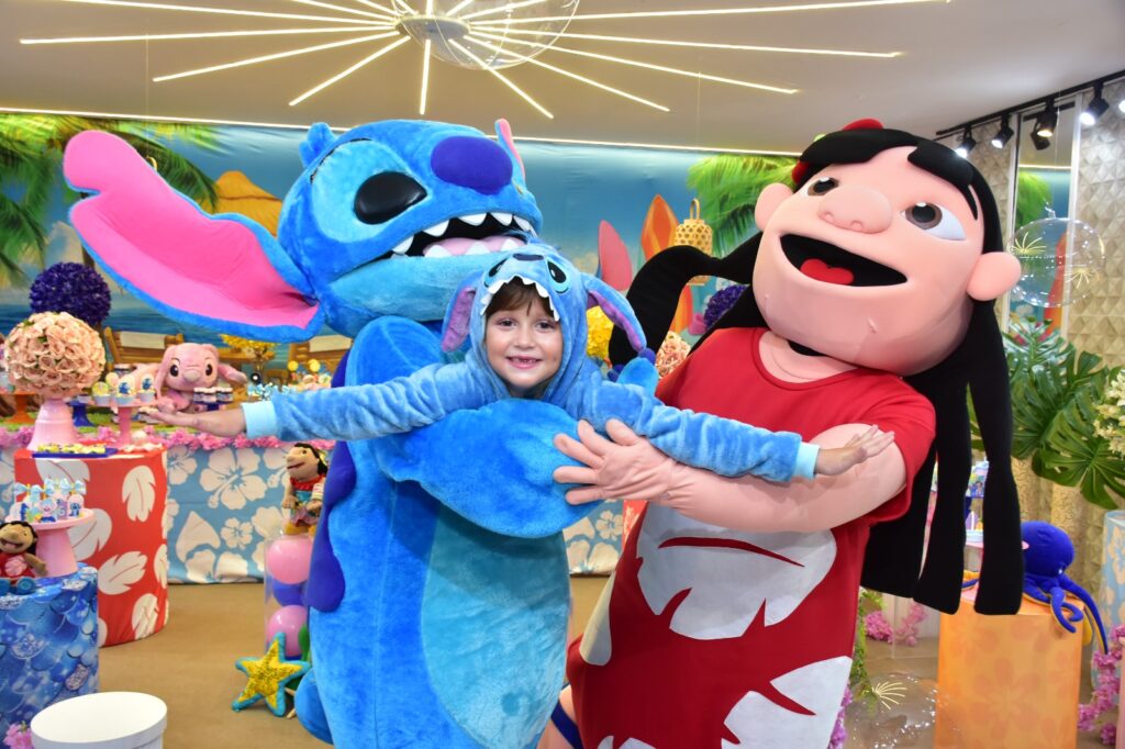 Bastante colorida, e com bolas e flores, a festa, realizada no salão Arca Encantada, teve como tema o Stitch, personagem do filme Lilo & Stitch, dos estúdios Disney, que fez o maior sucesso.