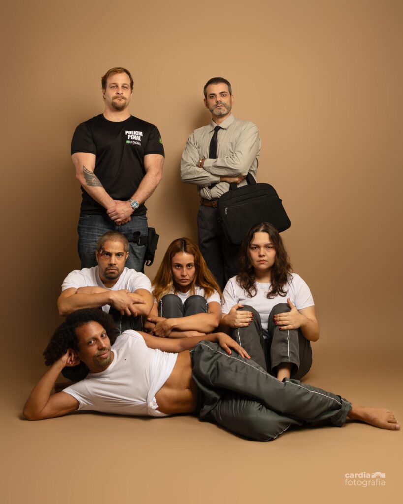 No palco, os atores os atores Alexia Lameira, Elton Castro, Igor Salmito, Bruno Miguel, Vitor Santos e Laura Siena, dão vida aos personagens e a seus conflitos.