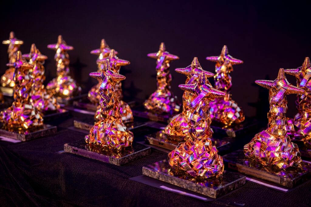 Os troféus do Festival de Cinema do Rio de 2024, no Cine Odeon. FOTO: CHRISTIAN RODRIGUES.