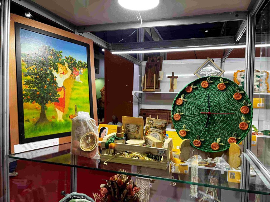 Outras 7 artesãs, que participaram do curso de Artesanato como Identidade Cultural, ministrado pela mestre artesã Lina de Melo, na sede da Fenig, estão com suas peças no estande mostrando referências da cultura iguaçuana, como a laranja e as riquezas do nosso patrimônio cultural.