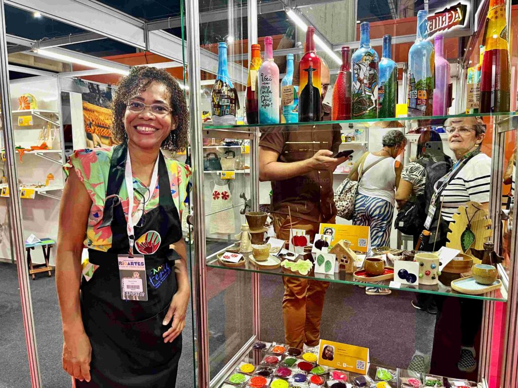 “Os visitantes que estão passando pelo estande de Nova Iguaçu, estão conhecendo o nosso artesanato e apreciando nossas criações. Assim, mostramos a capacidade de nossos profissionais”, constatou Dalva Santos, artesã ceramista que desenvolve um trabalho autoral transformando a argila em peças únicas e cheias de significado.