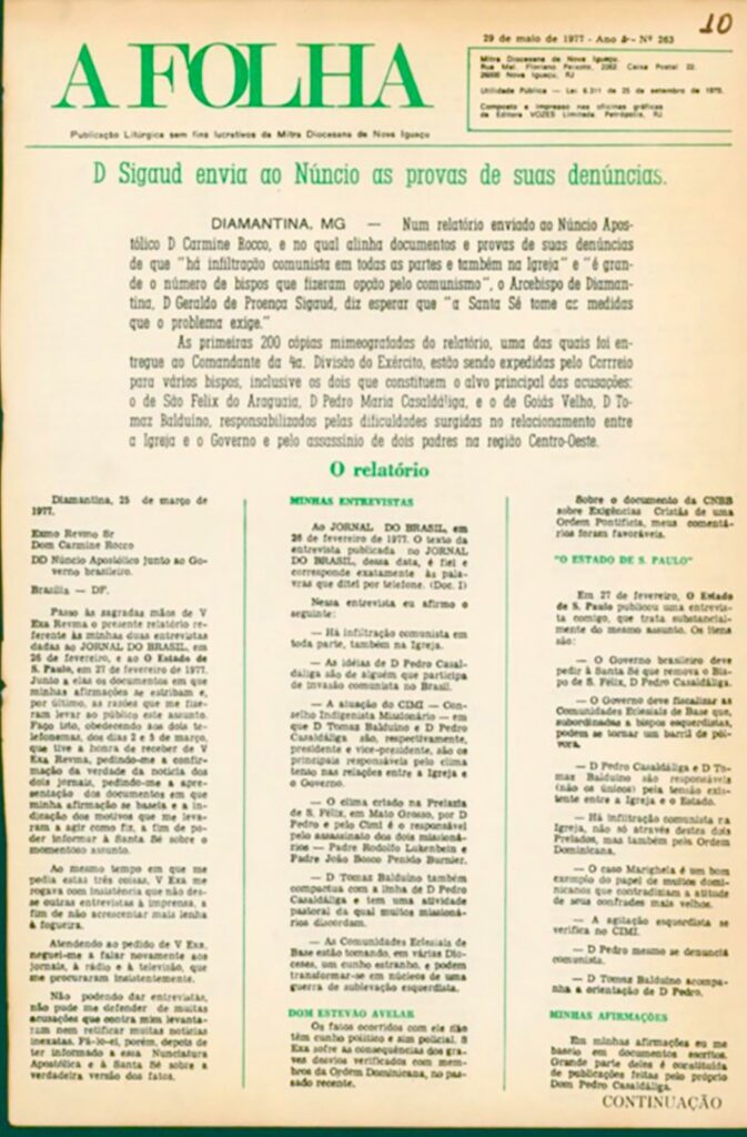 O legado de fé deixado por Dom Adriano Hipólito, terceiro bispo da Diocese de Nova Iguaçu (1966-1995) e responsável por reportagens no “A Folha”, ainda ecoa por meio de estudos na área de pós-graduação da Universidade Candido Mendes e da UFRRJ, que se uniram com coragem e compromisso para narrar um dos período mais críticos de nossa sociedade: a ditadura militar.