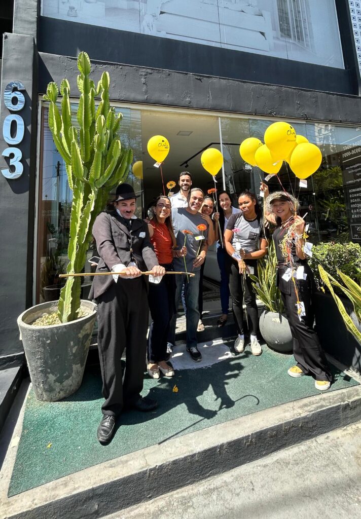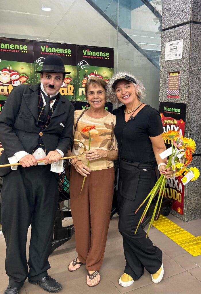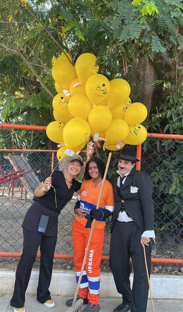 Esta semana, ao lado do ator Paim Silva, caracterizado com sua melhor criação, o famoso personagem do cinema mudo Carlitos, Ana distribuiu pelo comércio e pelas ruas da cidade, margaridas e balões amarelos, em forma de gratidão. E fez o maior sucesso.