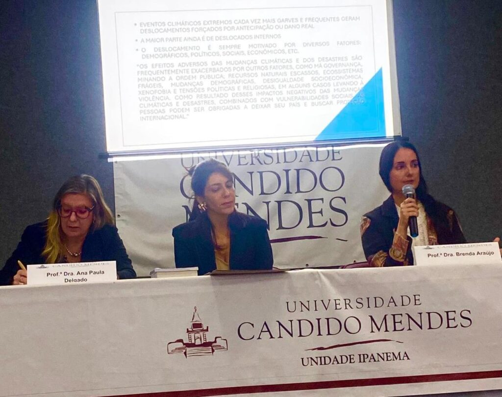 Após a abertura do congresso, a professora Brenda Maria Ramos Araújo, professora voluntária da UFRJ e pesquisadora do Laboratório de Pesquisas Avançadas em Direito Internacional e Ambiental (LEPADIA/UFRJ) proferiu a palestra “A proteção dos deslocados climáticos segundo o ACNUR”.