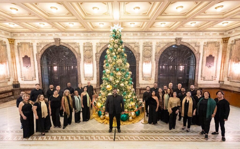 Cinco minutos depois, às 19h05, o Coral do Theatro Municipal apresenta uma emocionante Cantata de Natal, com arranjos especiais para a ocasião.