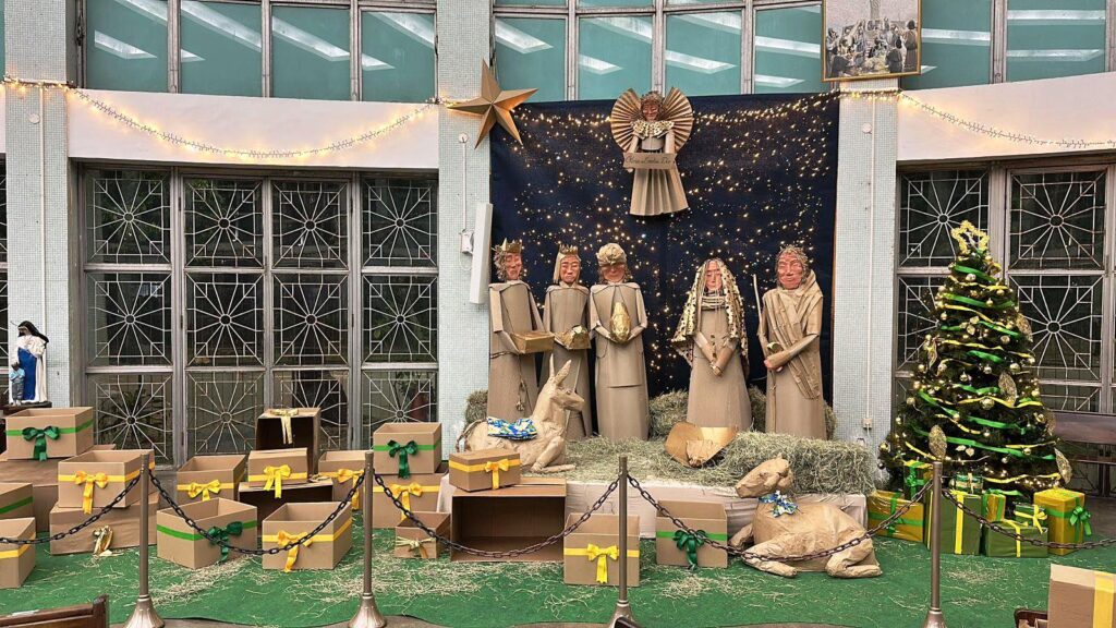 Construído em papel reciclado e barro, o presépio resgata com simplicidade e brasilidade o nascimento de Jesus e a chegada dos Reis Magos e que também abriga um espaço dedicado à receber doações para pessoas em situação de vulnerabilidade social.
