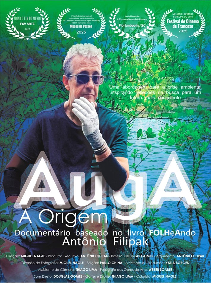 Filme “AugA – A Origem” de Antônio Filipak, é um grito de alerta sobre a degradação do meio ambiente, a destruição das florestas, a poluição dos mares e a exploração descontrolada dos recursos naturais. É um documentário que mergulha na trajetória do artista plástico e visual Antônio Filipak que, desde os anos 70, tem a arte como trincheira e resistência.