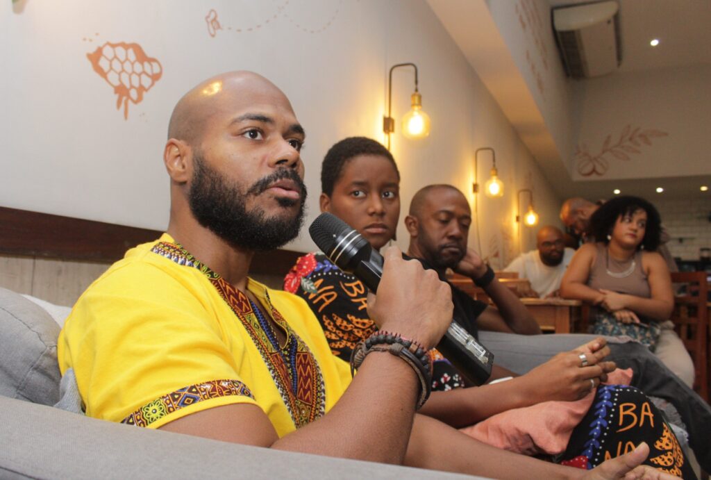 Participantes: o pedagogo e criador do movimento Sextou, Moisés Machado; a artista visual e professora, Barbara Copque; o mestre em Cultura e Territorialidades, Osmar Paulino; o editor fundador da Editora Malé, Vagner Amaro.