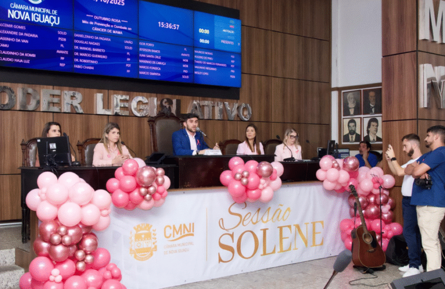 A Câmara de Nova Iguaçu promoveu, na última quinta, 30/10, uma Sessão Solene em alusão ao Outubro Rosa — campanha que mobiliza a conscientização sobre o câncer de mama e a importância da prevenção.