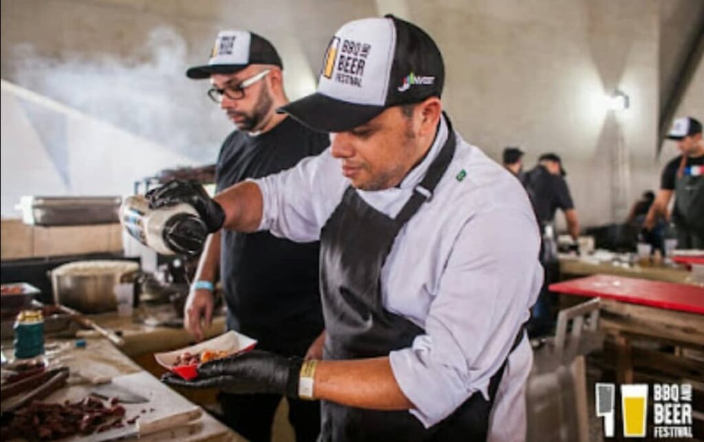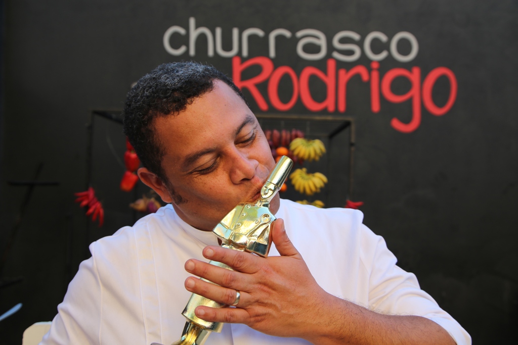 O Chef Rodrigo Barros com o  chef Pietro em ação no BBQ Beer Festival na Cidade das Artes, no Rio de Janeiro.