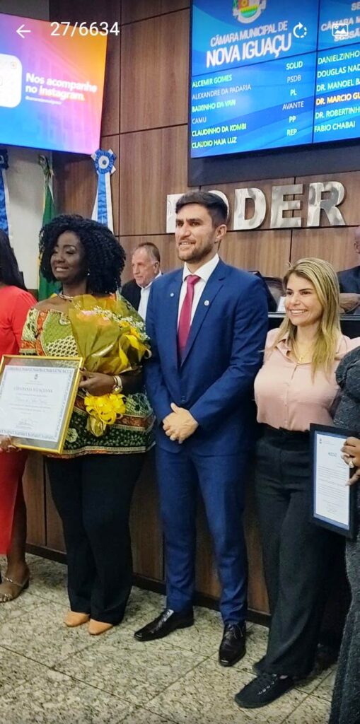 Este foi mais um ano de luta para as causas que defende e Mônica Santos tem muito o que comemorar: recentemente ela recebeu o título de Cidadania Iguaçuana, das mãos da Secretaria da Mulher e vice-prefeita Roberta Teixeira. A indicação para a honraria foi do presidente da Câmara de Nova Iguaçu, vereador Márcio Guerreiro.