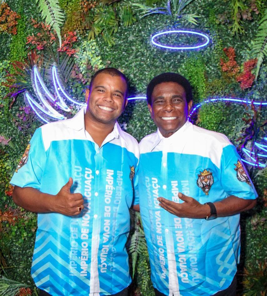 Luis Antônio, presidente da Império de Nova Iguaçu, recebe o seu pai e presidente de honra da escola, Neguinho da Beija-Flor.