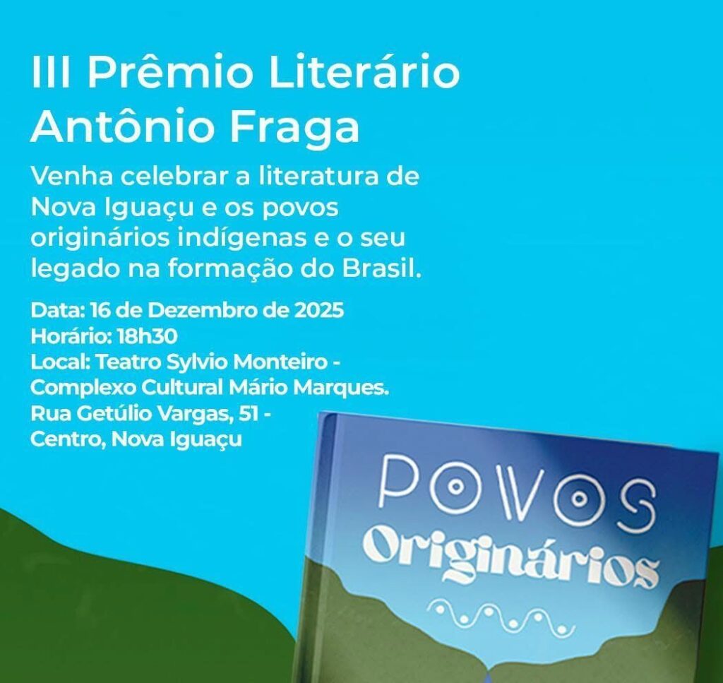 Uma cidade com vocação literária celebra seus escritores na Noite de Autógrafos da terceira edição do Prêmio Antônio Fraga, nesta terça-feira (16), às 18h30, no Teatro Sylvio Monteiro, na Rua Getúlio Vargas, 51, no Centro de Nova Iguaçu.